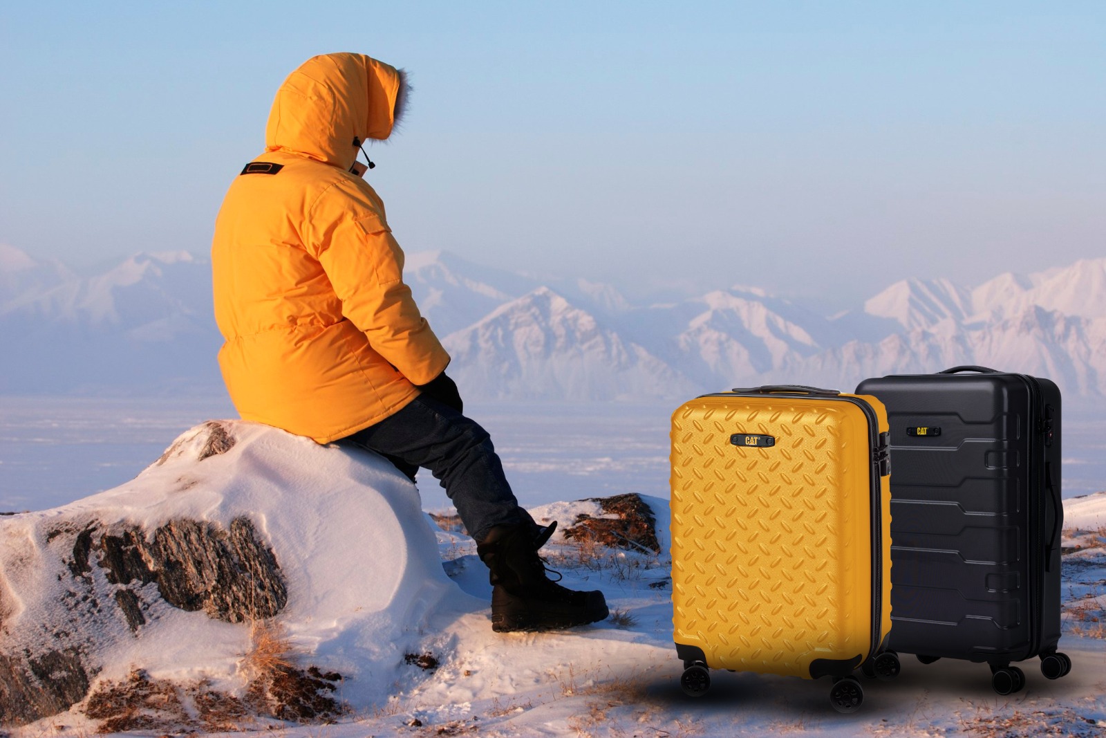 Receive a choice of gift for either : one CATERPILLAR Sulphur 24” Industrial Plate or one CATERPILLAR Black Tank 24” luggage bag worth S$220