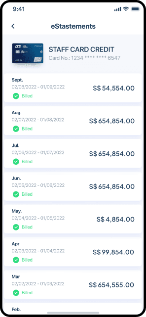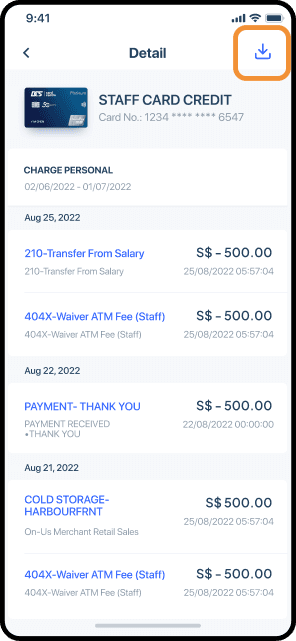 Select the billing month to view your statement. If you wish to download a PDF copy of your statement, tap on the 'Download' icon on the top right of the screen.